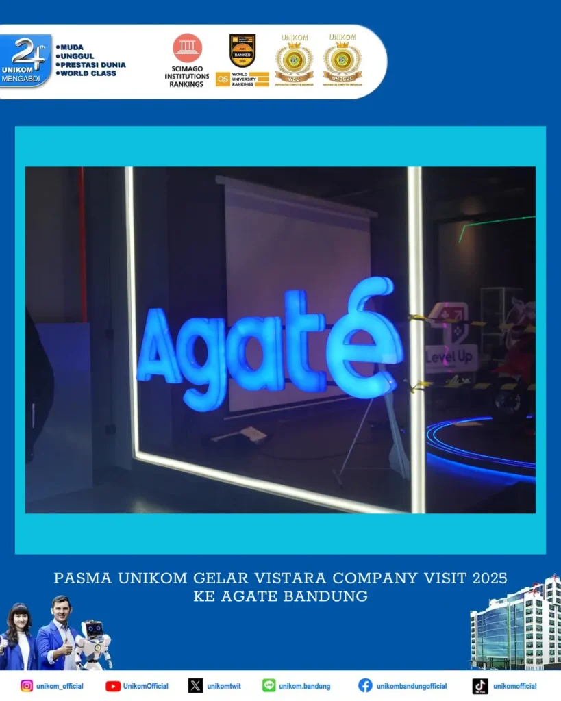 Bandung, UNIKOM – PASMA UNIKOM bersama Fakultas Pascasarjana UNIKOM menggelar acara VISTARA Company Visit 2025 ke Agate. Acara pada Kamis, 24 Juli 2025 ini diikuti oleh Mahasiswa/i Fakultas Pascasarjana UNIKOM TA 2024/2025 untuk memperluas wawasan mengenai dunia industri dan profesional, khususnya di bidang pengembangan game.